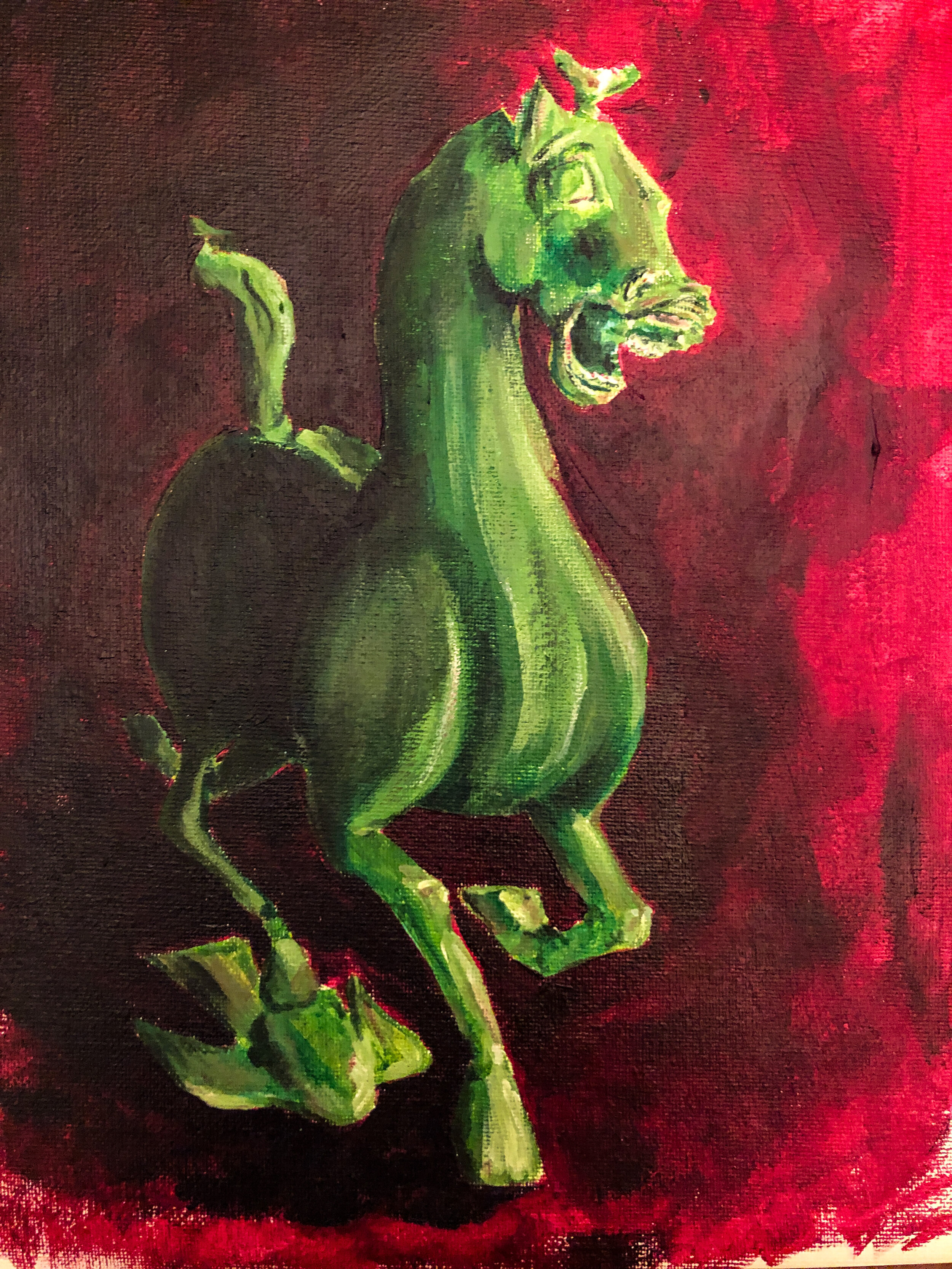 Form and Color - finding color in shadow, form in highlight. Grisaille to color. Glaze. Scumble. Glaze. Scumble. Let dry. Find shadow again. Correct color. Clean up stem. Let dry again. Bring back highlight. Glaze. Scumble. Scumble… still along way to go.